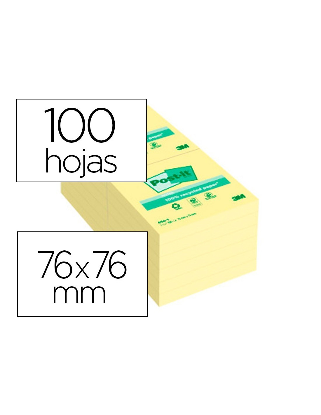 BLOC DE NOTAS ADHESIVAS QUITA Y PON POST-IT 76X76 MM PAPEL RECICLADO AMARILLO