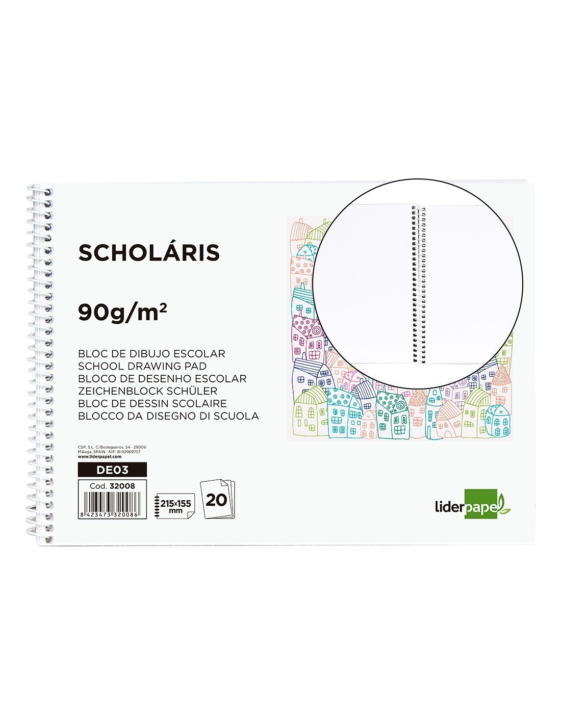 BLOC DIBUJO LIDERPAPEL ESCOLAR ESPIRAL 155X215MM 20 HOJAS 90G/M2 SIN RECUADRO