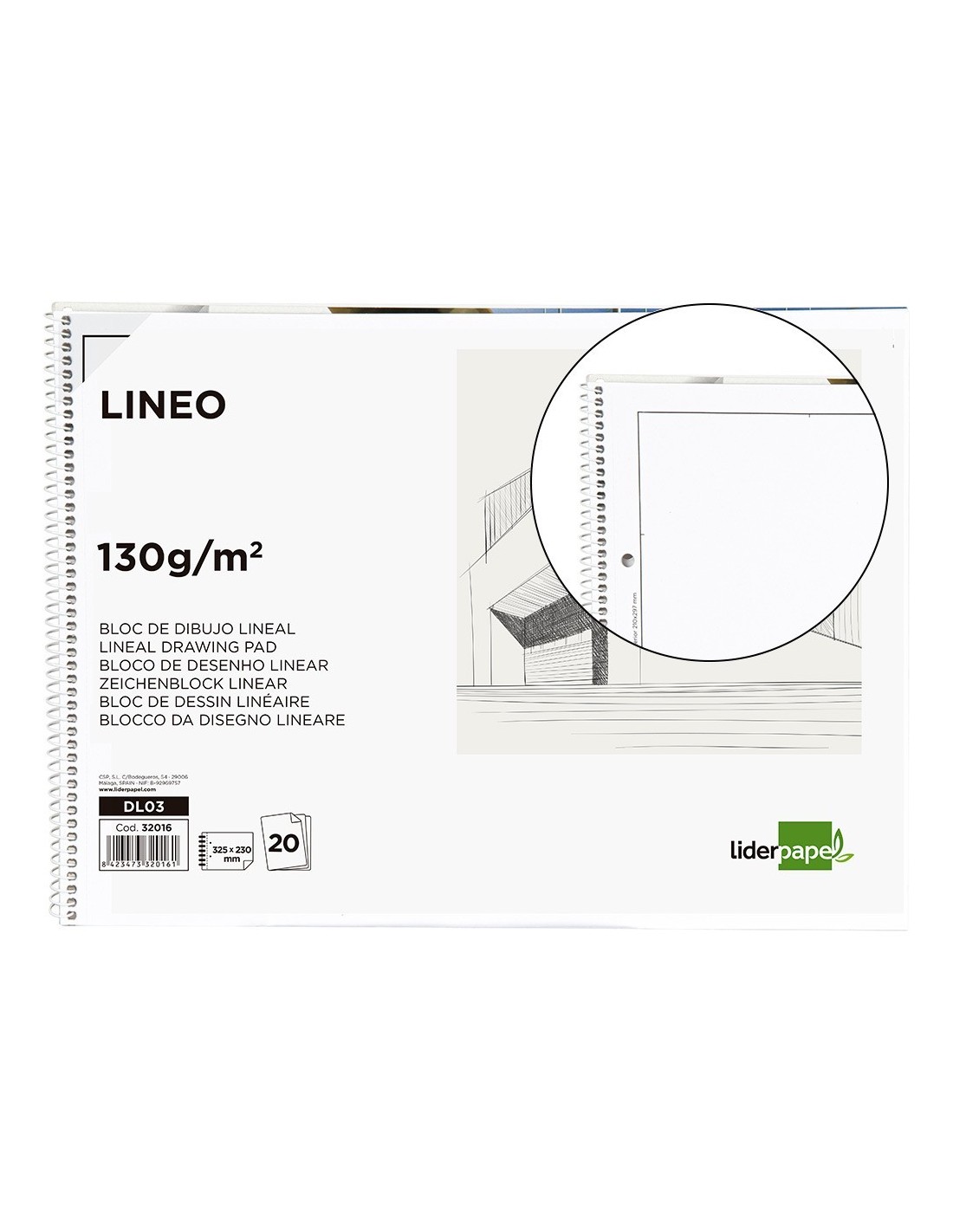 BLOC DIBUJO LIDERPAPEL LINEAL ESPIRAL 230X325MM 20 HOJAS 130G/M2 CON RECUADRO 2 TALADROS PERFORADO
