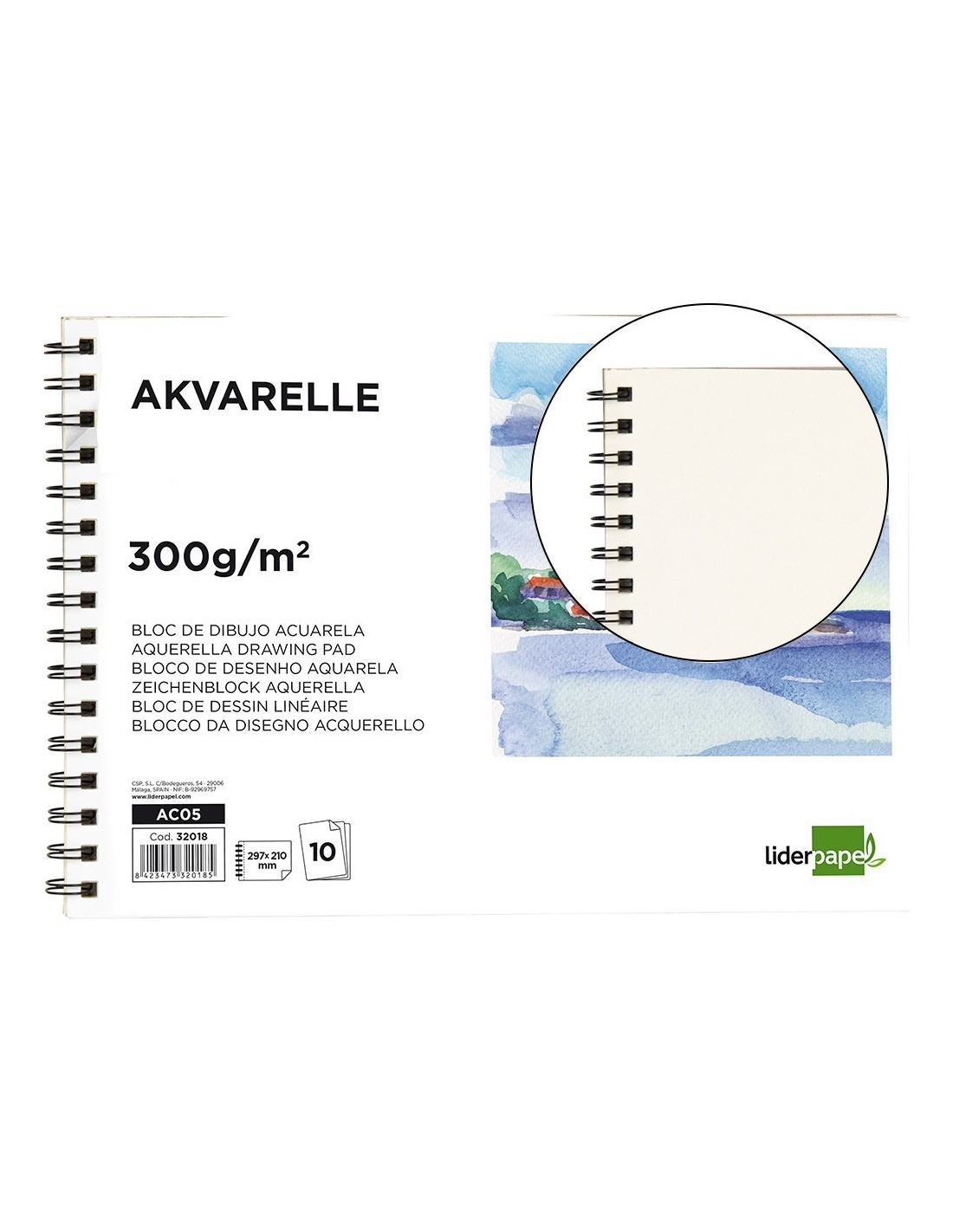 BLOC DIBUJO LIDERPAPEL ACUARELA ESPIRAL 297X210MM 10 HOJAS 300G/M2 SIN RECUADRO