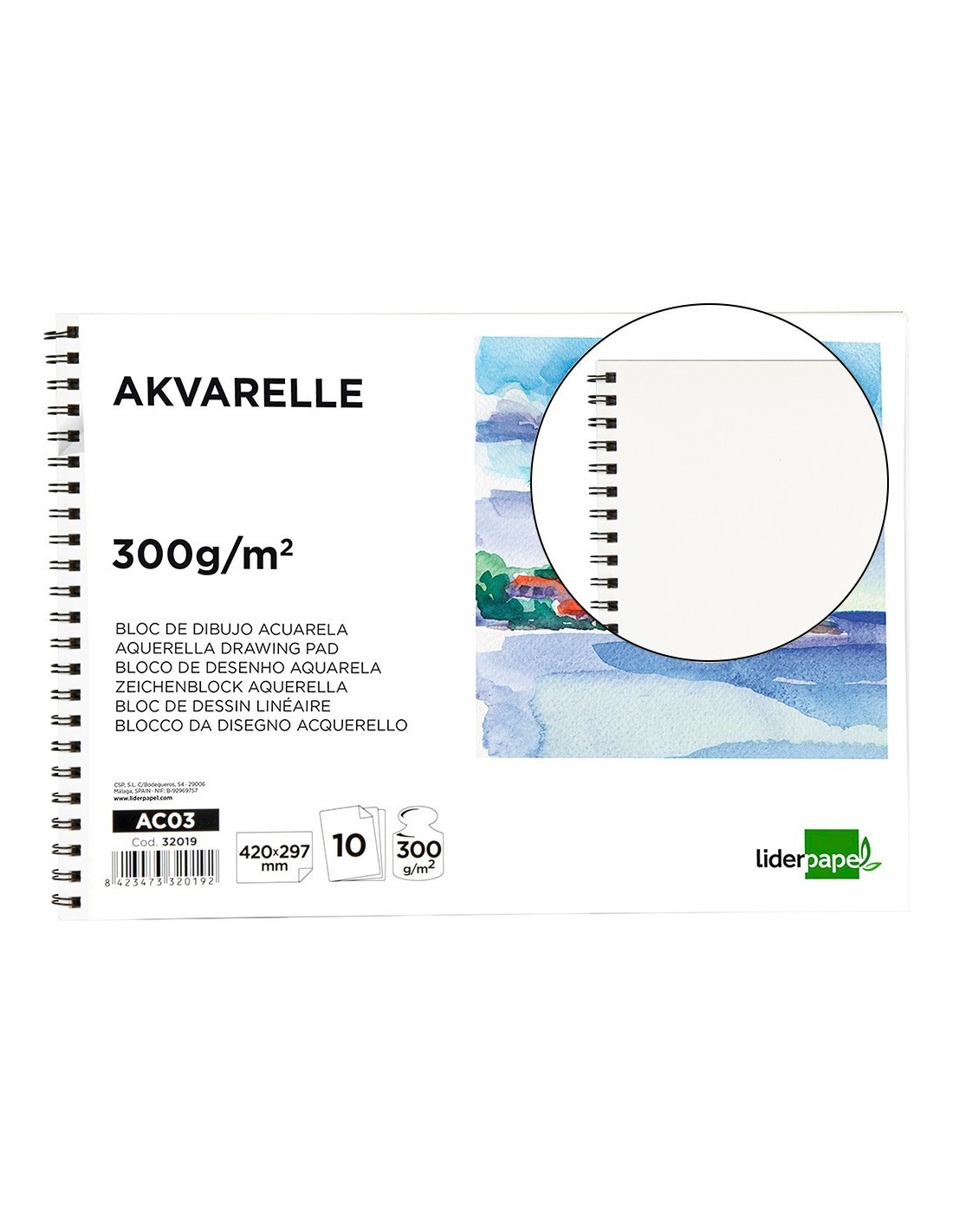 BLOC DIBUJO LIDERPAPEL ACUARELA ESPIRAL 297X420MM 10 HOJAS 300G/M2 SIN RECUADRO