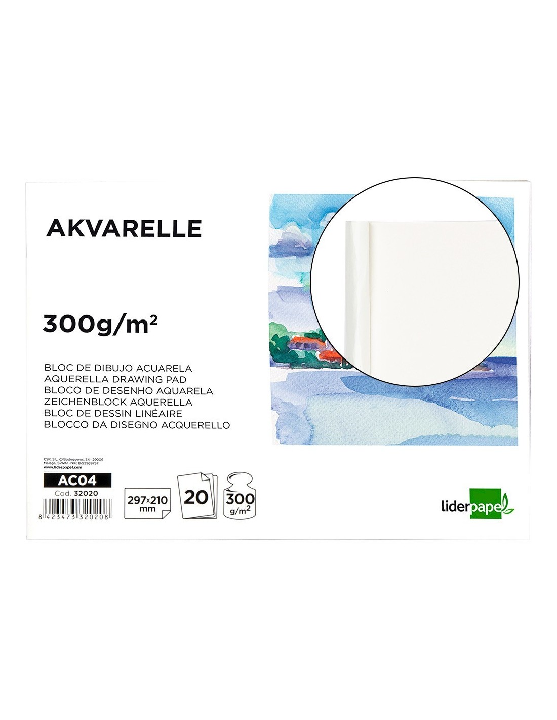 BLOC DIBUJO LIDERPAPEL ACUARELA ENCOLADO 210X297MM 20 HOJAS 300G/M2 SIN RECUADRO