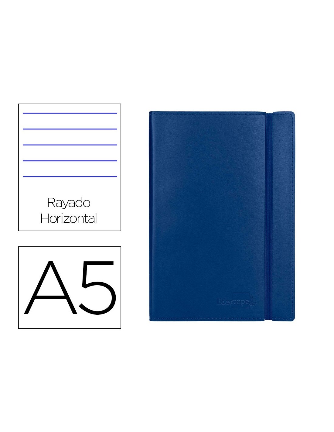 LIBRETA LIDERPAPEL SIMIL PIEL A5 120 HOJAS 70G/M2 HORIZONTAL SIN MARGEN AZUL