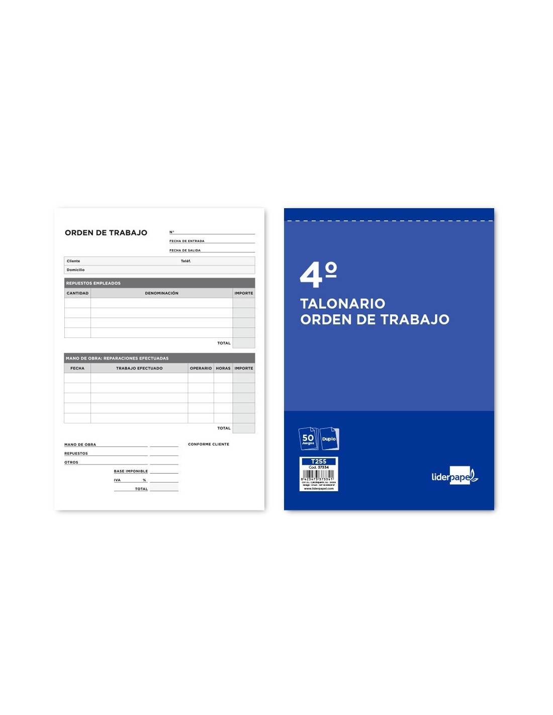 TALONARIO LIDERPAPEL ORDEN DE TRABAJO CUARTO ORIGINAL Y COPIA T255