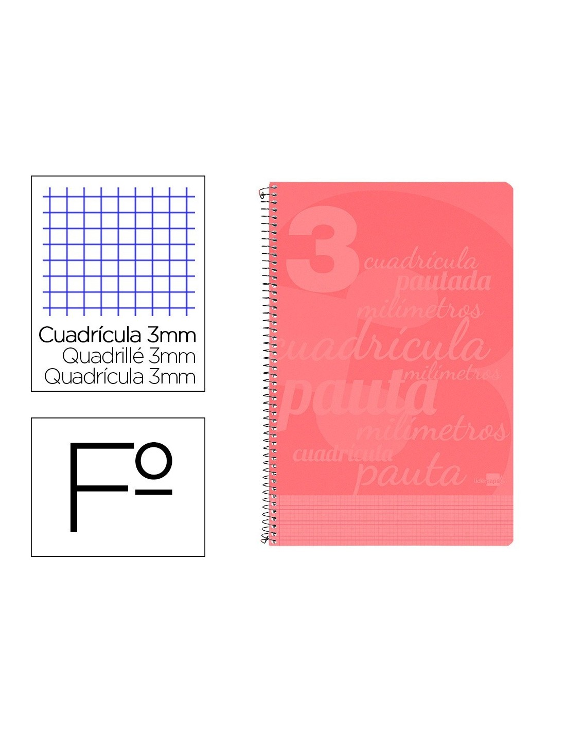 CUADERNO ESPIRAL LIDERPAPEL FOLIO PAUTAGUIA TAPA PLASTICO 80H 75GR CUADRO PAUTADO 3MM CON MARGEN COLOR ROJO