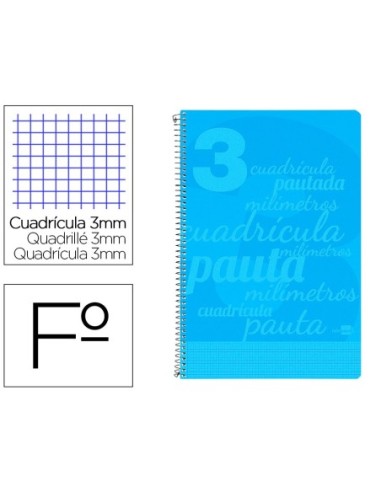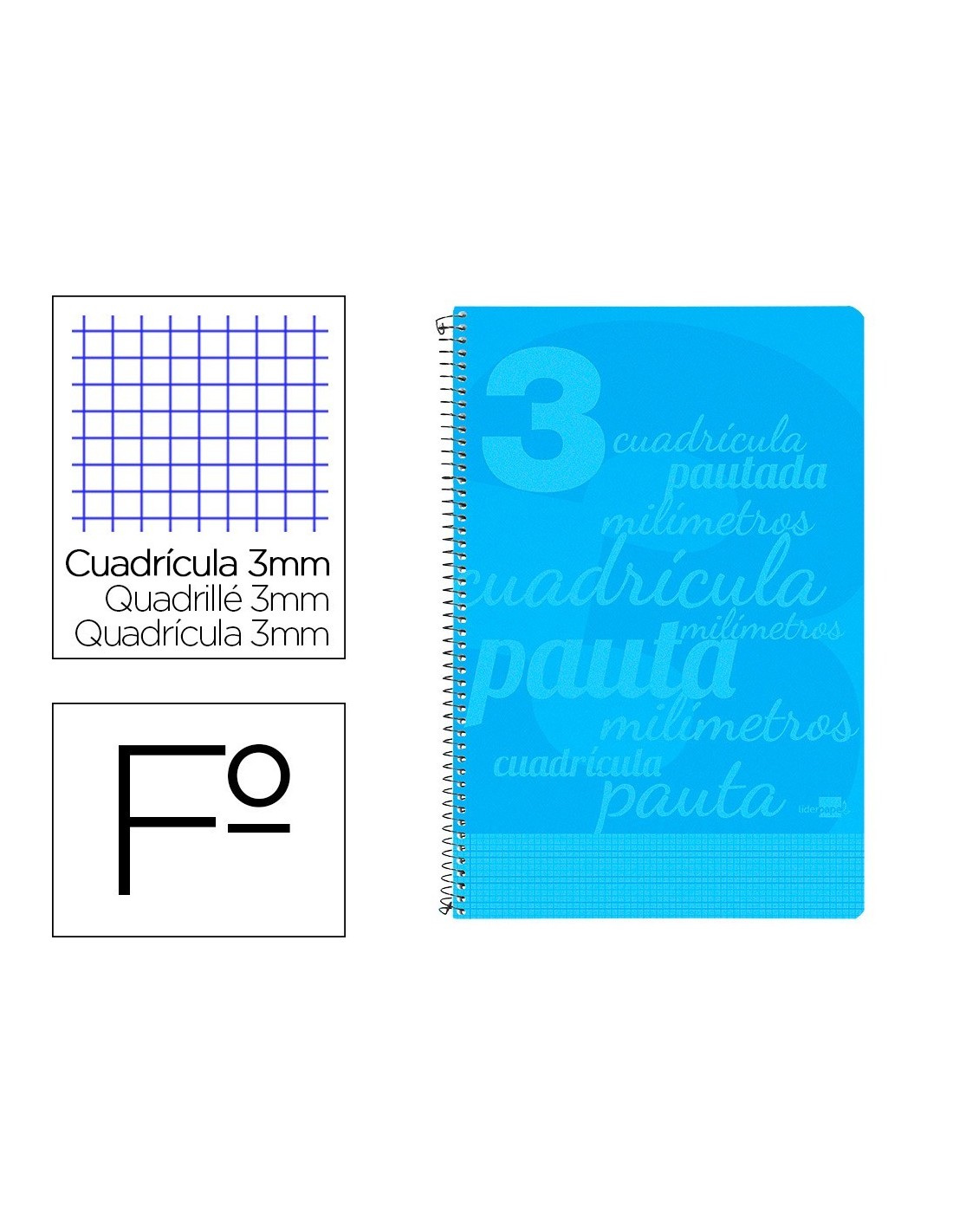 CUADERNO ESPIRAL LIDERPAPEL FOLIO PAUTAGUIA TAPA PLASTICO 80H 75GR CUADRO PAUTADO 3MM CON MARGEN COLOR AZUL