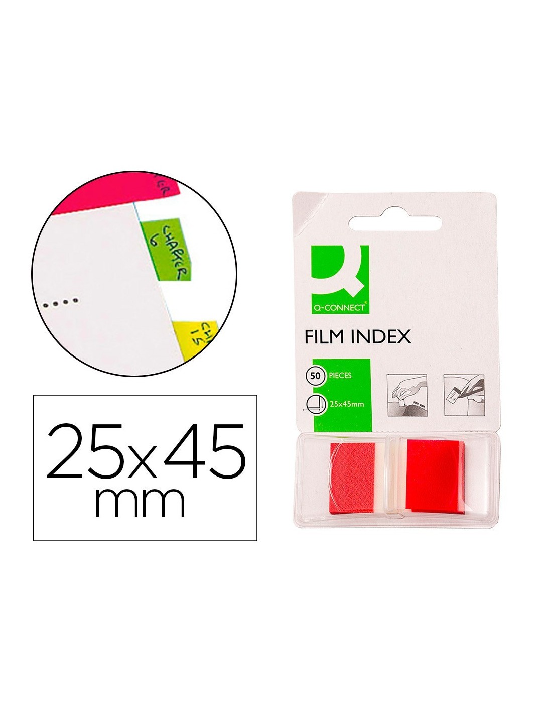 BANDERITAS SEPARADORAS Q-CONNECT ROJAS DISPENSADOR DE 50 UNIDADES