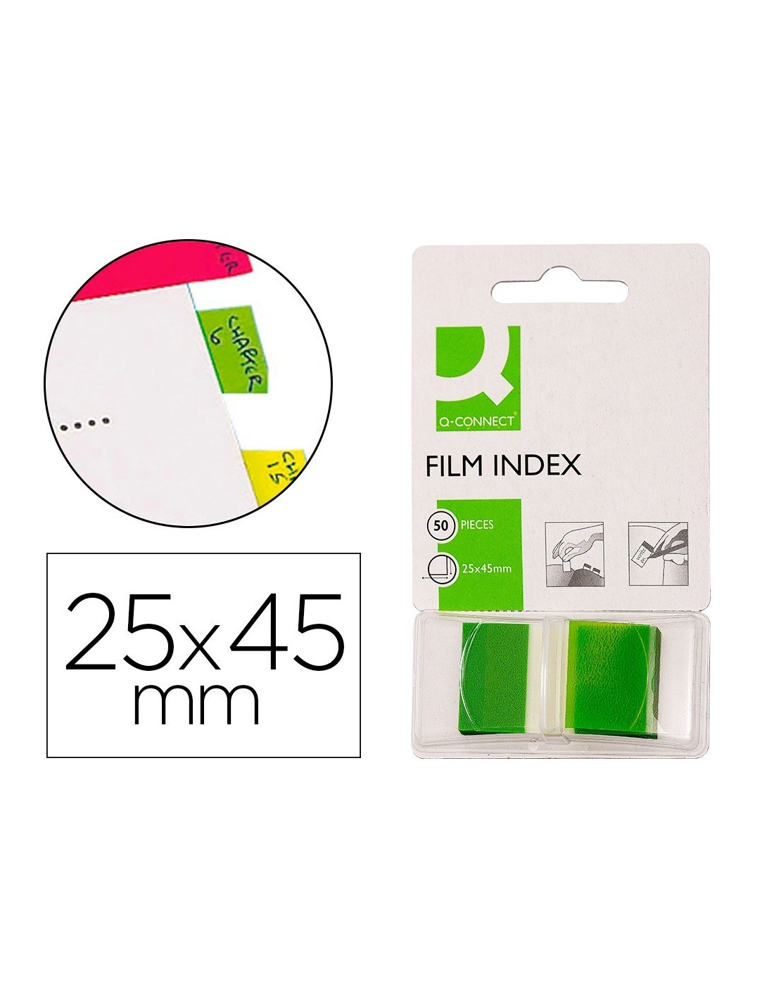 BANDERITAS SEPARADORAS Q-CONNECT VERDES DISPENSADOR DE 50 UNIDADES