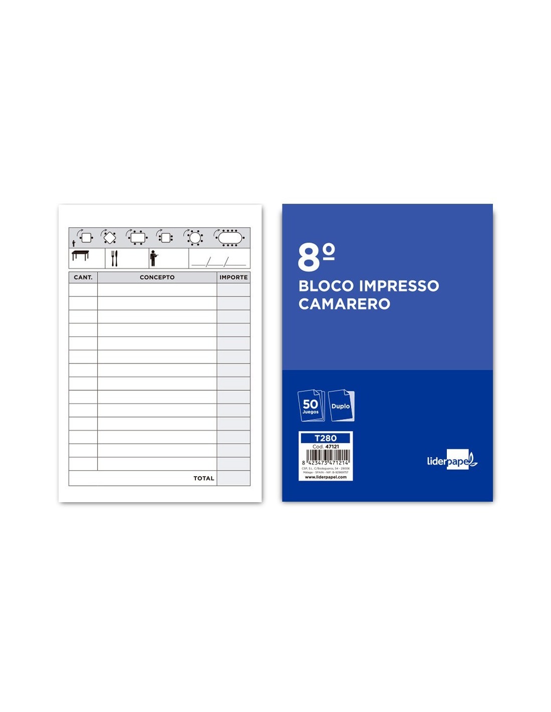 TALONARIO LIDERPAPEL CAMARERO 8. ORIGINAL Y COPIA T280
