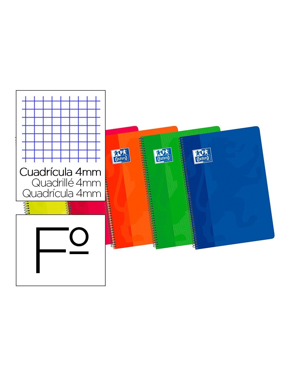 BLOC ESPIRAL OXFORD CARTONCILLO FOLIO 80 HOJAS CUADROS 4 MM