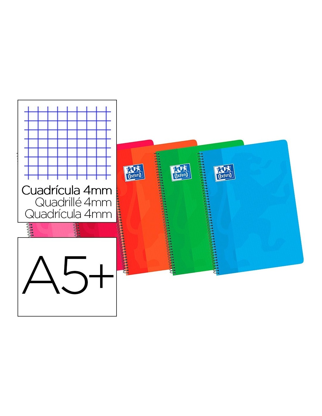 BLOC ESPIRAL OXFORD CARTONCILLO CUARTO 80 HOJAS CUADROS 4 MM