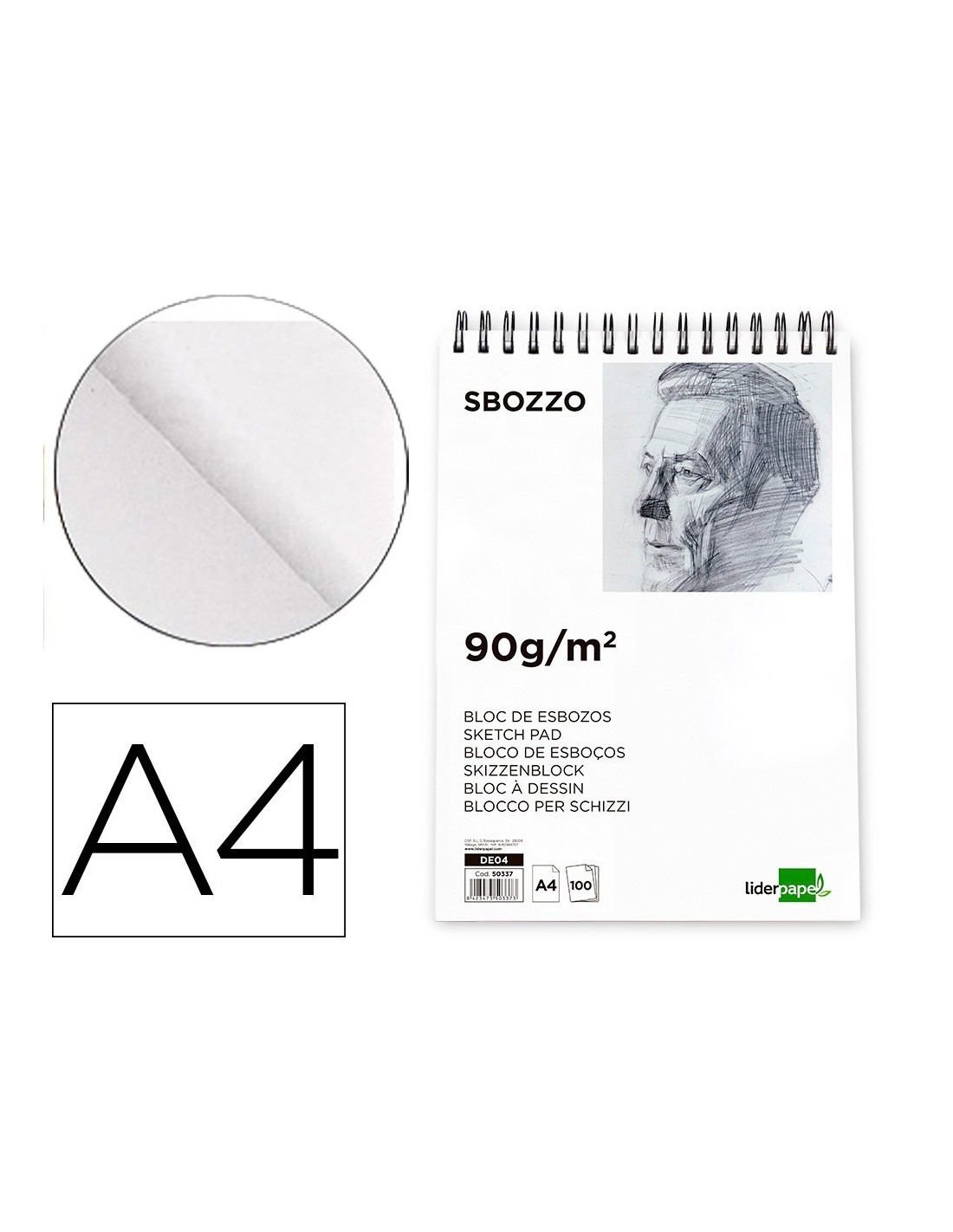 BLOC DIBUJO LIDERPAPEL ESBOZOS ESPIRAL DIN A4 210X297MM 100 HOJAS 90G/M2 SIN RECUADRO