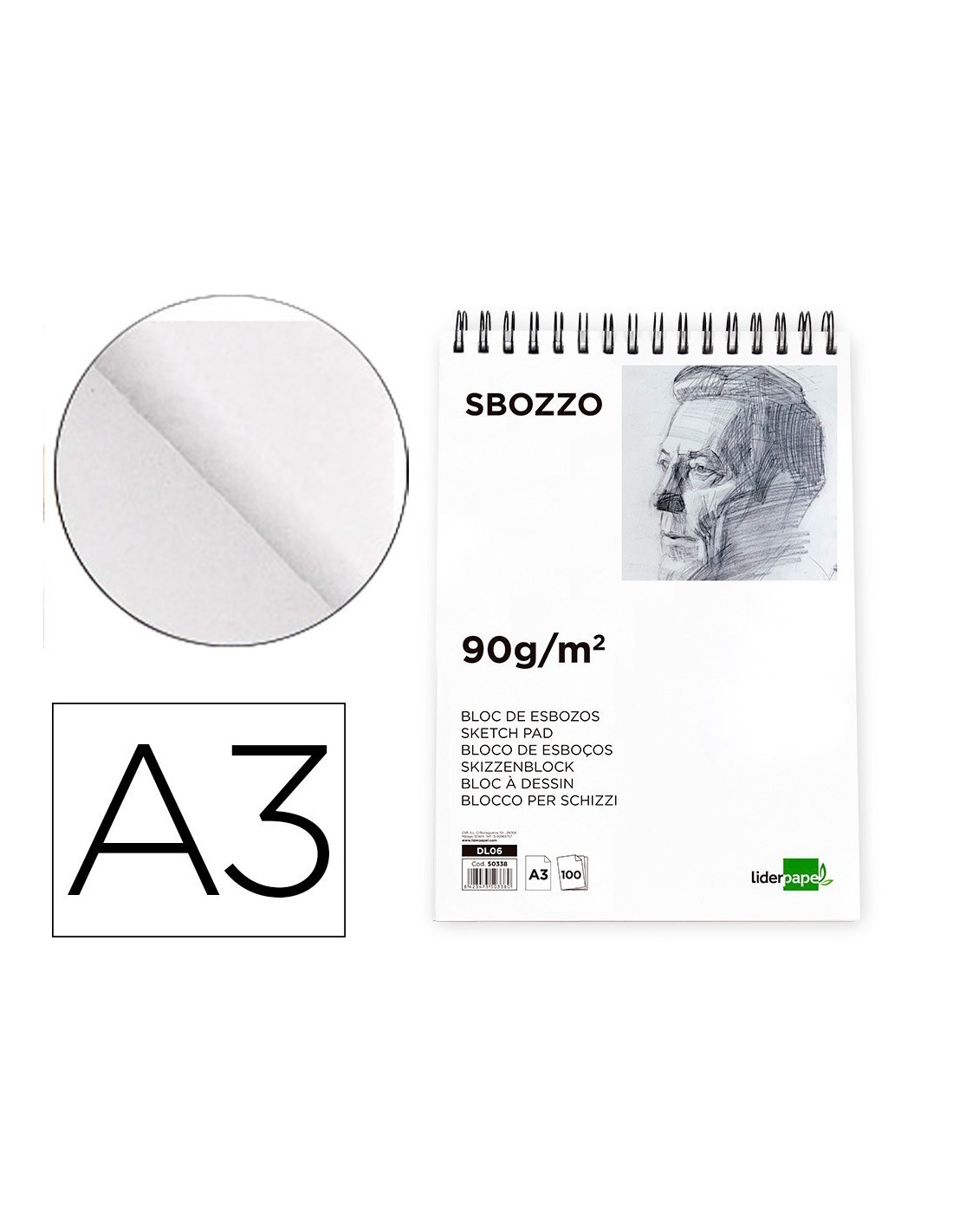 BLOC DIBUJO LIDERPAPEL ESBOZOS ESPIRAL A3 297X420MM 100 HOJAS 90G/M2 SIN RECUADRO