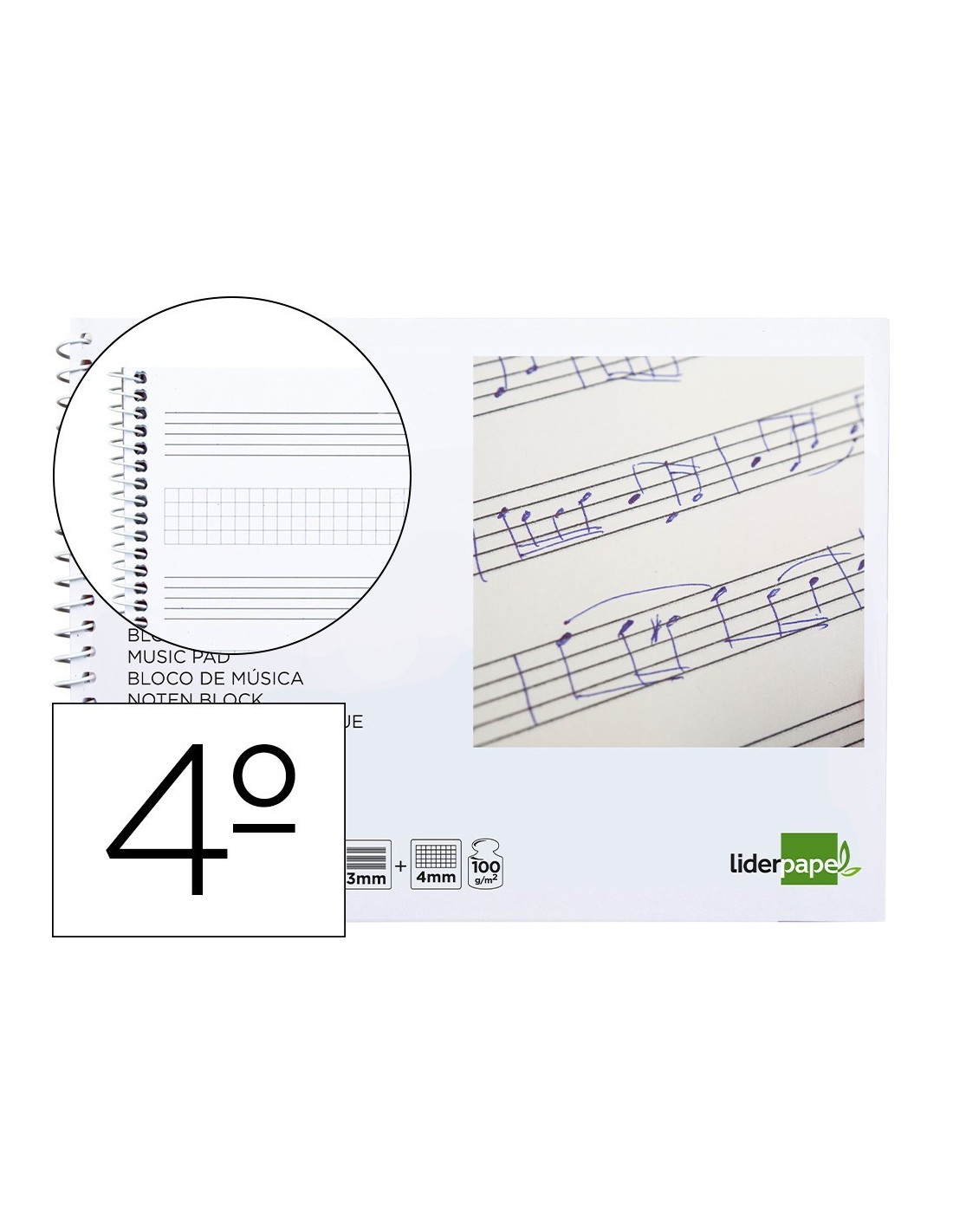 BLOC MUSICA LIDERPAPEL COMBI PENTAGRAMA 3MM MAS CUADRICULA DE 4MM PARA ANOTACIONES CUARTO20 HOJAS 100G/M2