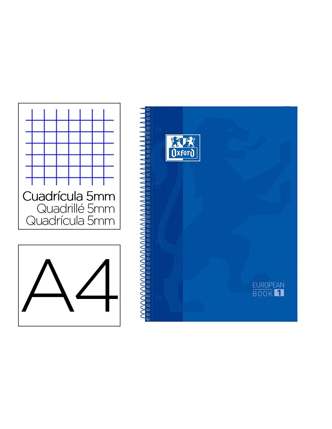 BLOC ESPIRAL OXFORD TAPA EXTRADURA MICROPERFORADO DIN A4 80 HOJAS CUADROS 5MM COLOR AZUL