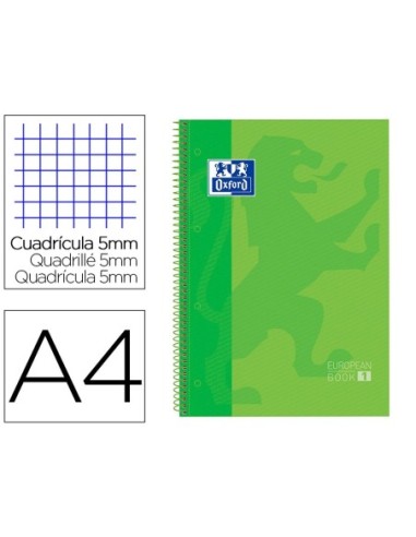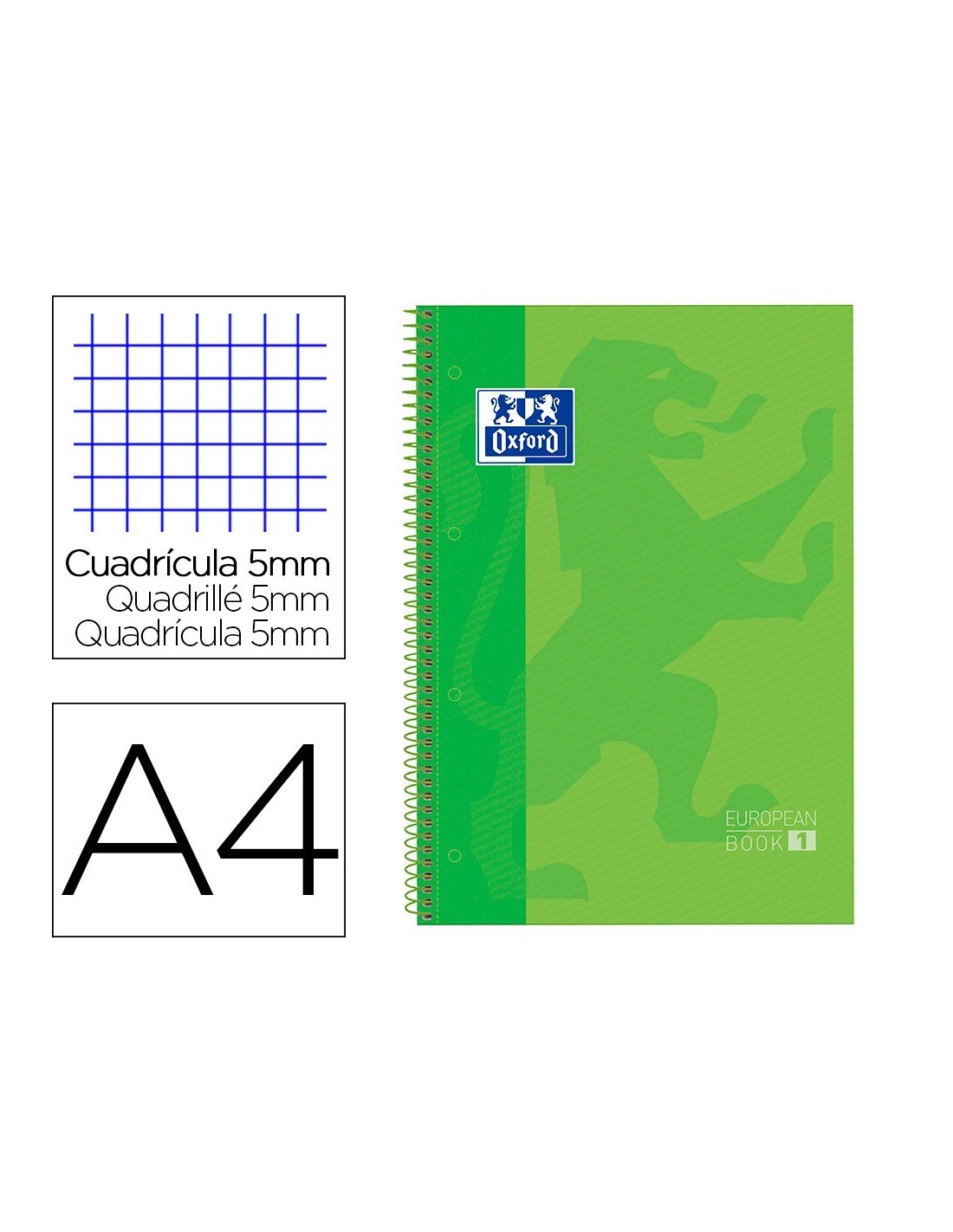 BLOC ESPIRAL OXFORD TAPA EXTRADURA MICROPERFORADO DIN A4 80 HOJAS CUADROS 5MM COLOR VERDE