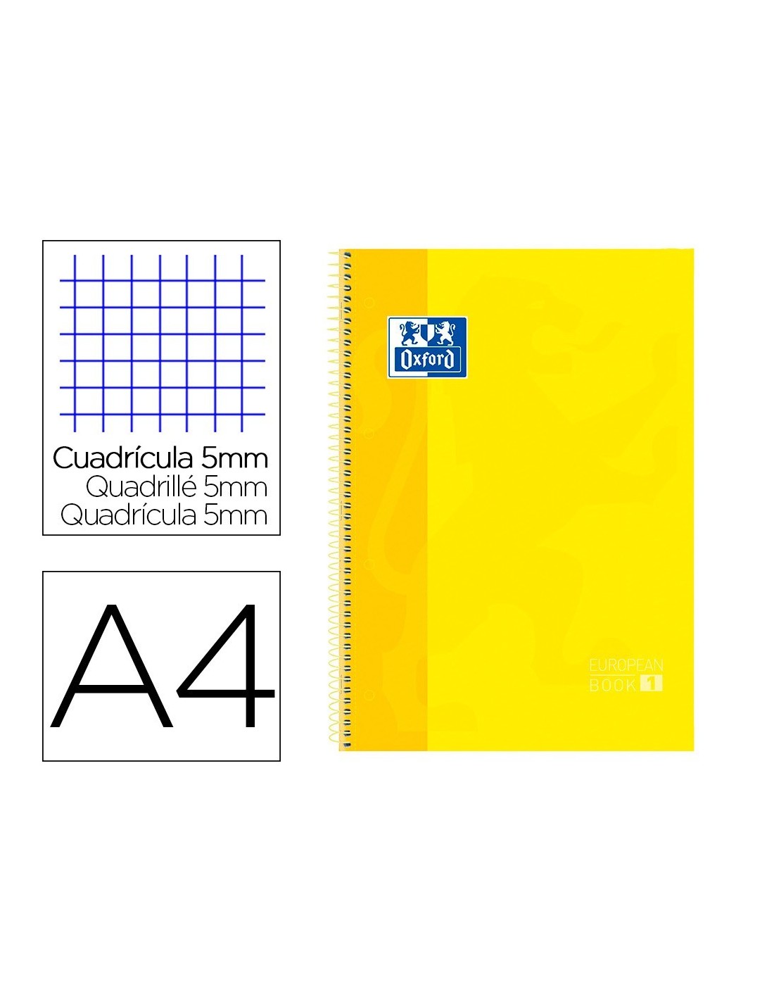 BLOC ESPIRAL OXFORD TAPA EXTRADURA MICROPERFORADO DIN A4 80 HOJAS CUADROS 5MM COLOR AMARILLO