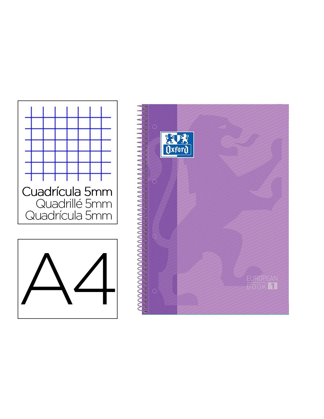 BLOC ESPIRAL OXFORD TAPA EXTRADURA MICROPERFORADO DIN A4 80 HOJAS CUADROS 5MM -COLOR LILA
