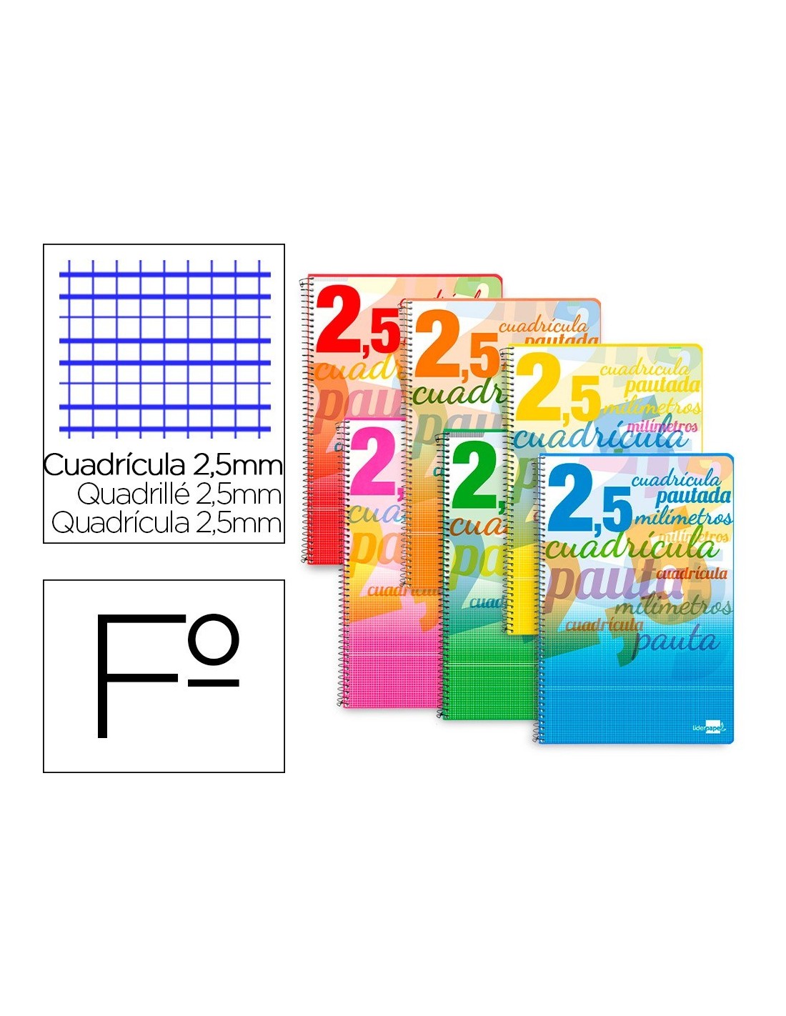 CUADERNO ESPIRAL LIDERPAPEL FOLIO PAUTAGUIA TAPA BLANDA 80H 75 GR CUADRO PAUTADO 2,5MM CON MARGEN COLORES SURTIDOS