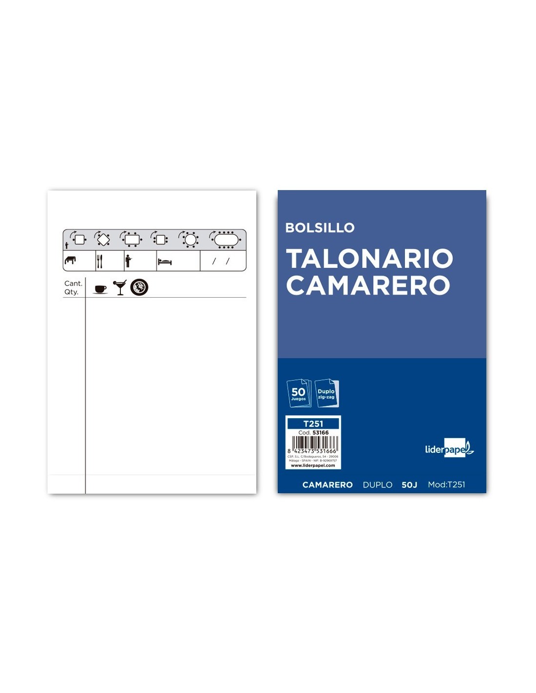 TALONARIO LIDERPAPEL CAMARERO BOLSILLO ORIGINAL Y COPIA T251 ZIG ZAG