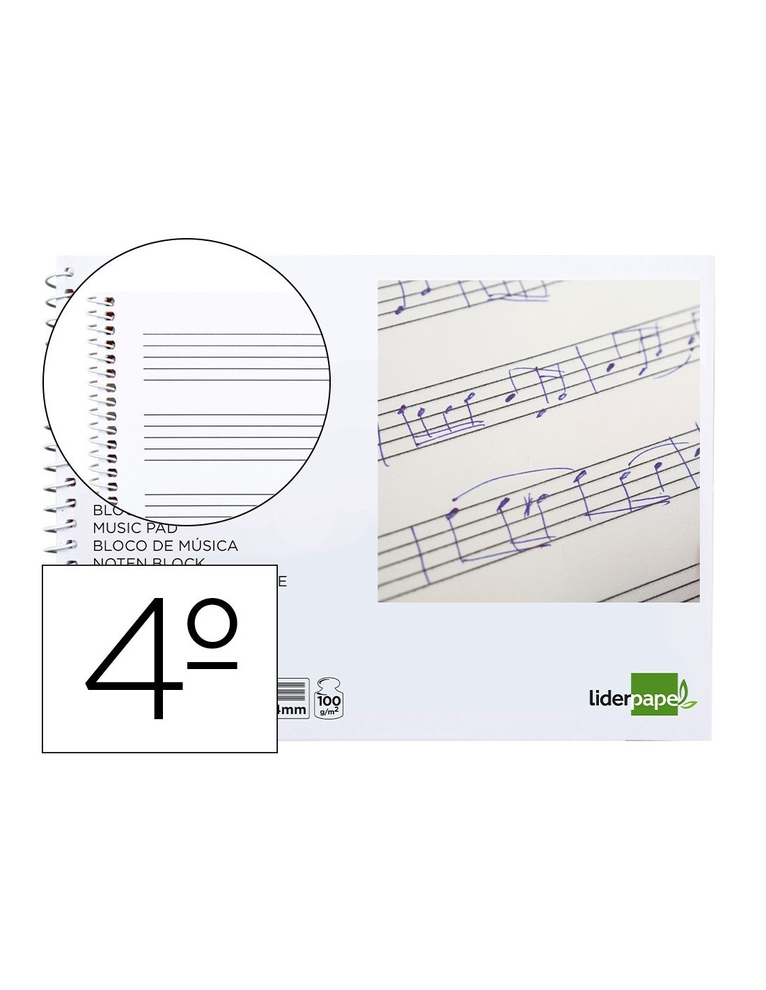 BLOC MUSICA LIDERPAPEL PENTAGRAMA 4MM CUARTO 20 HOJAS 100G/M2