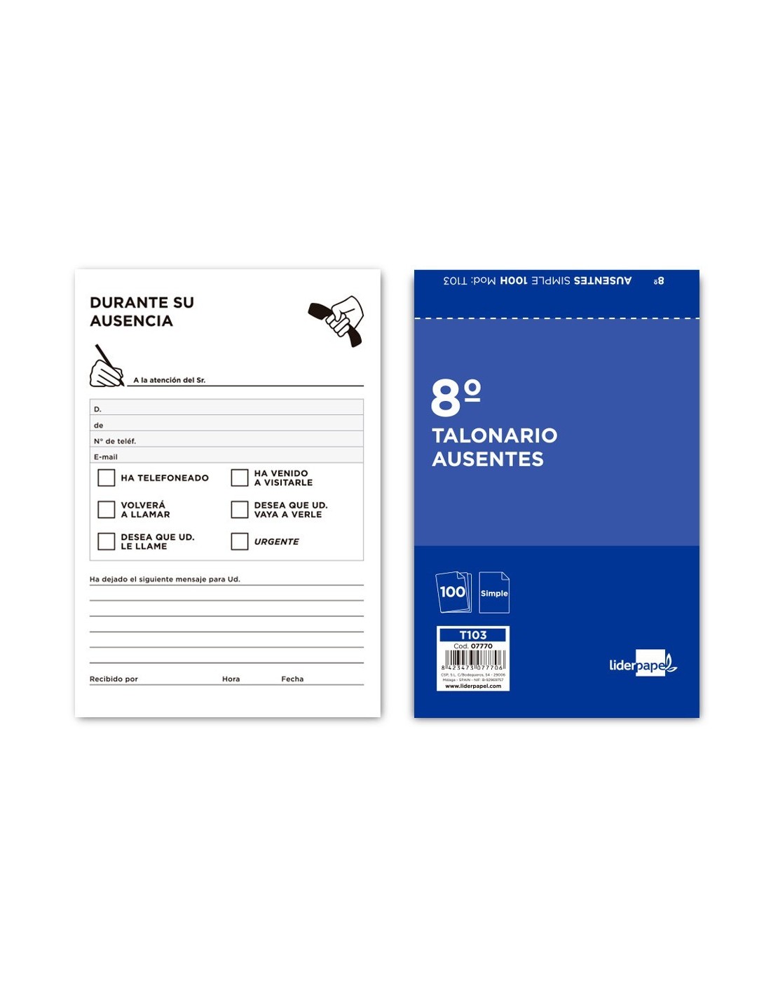 TALONARIO LIDERPAPEL AUSENTES OCTAVO 103