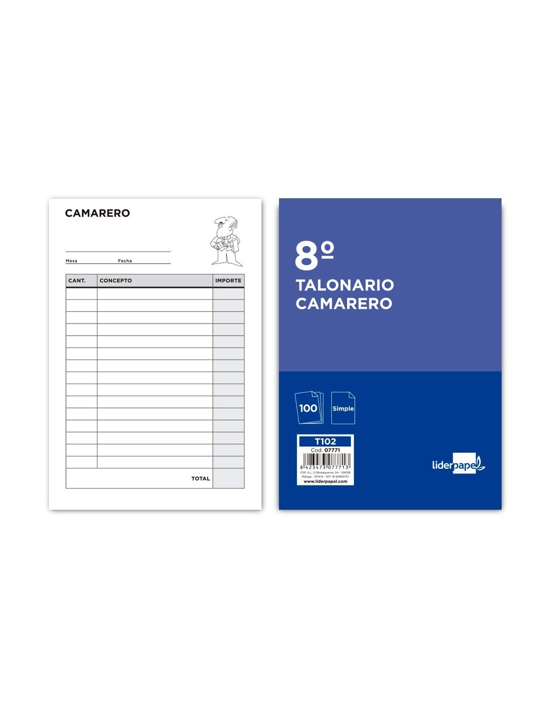 TALONARIO LIDERPAPEL CAMARERO OCTAVO -SIN IVA- 102