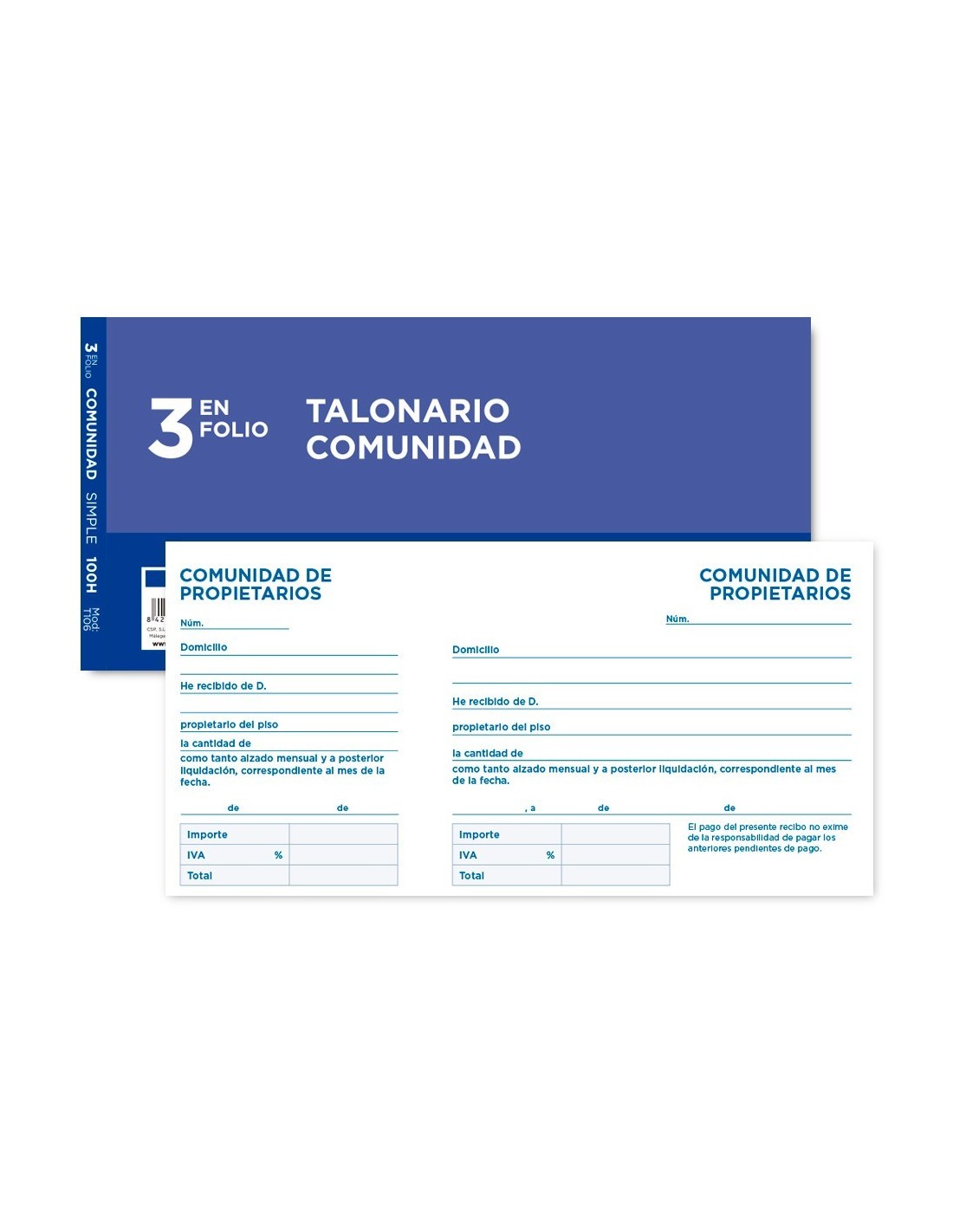 TALONARIO LIDERPAPEL COMUNIDAD TRES DEL FOLIO 106 -CON IVA