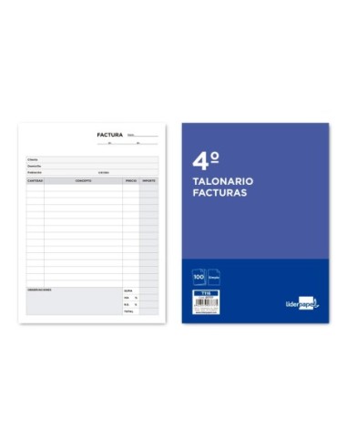 TALONARIO LIDERPAPEL FACTURAS CUARTO -CON IVA- 116
