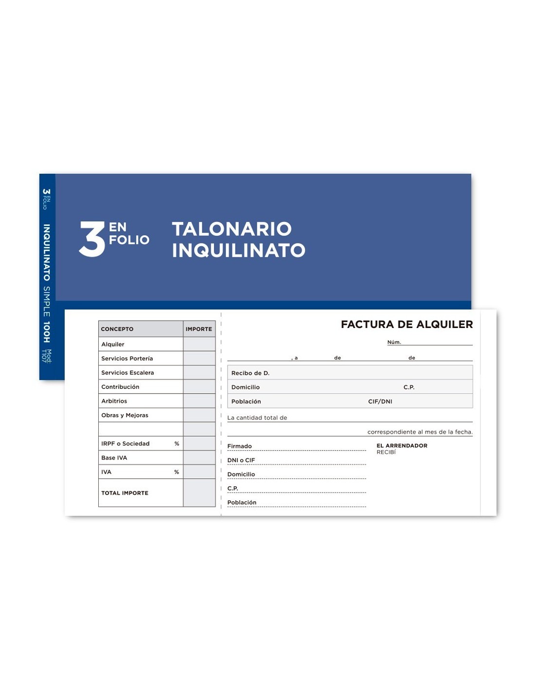 TALONARIO LIDERPAPEL INQUILI- NATO TRES DEL FOLIO 107 -CON CONDICIONES