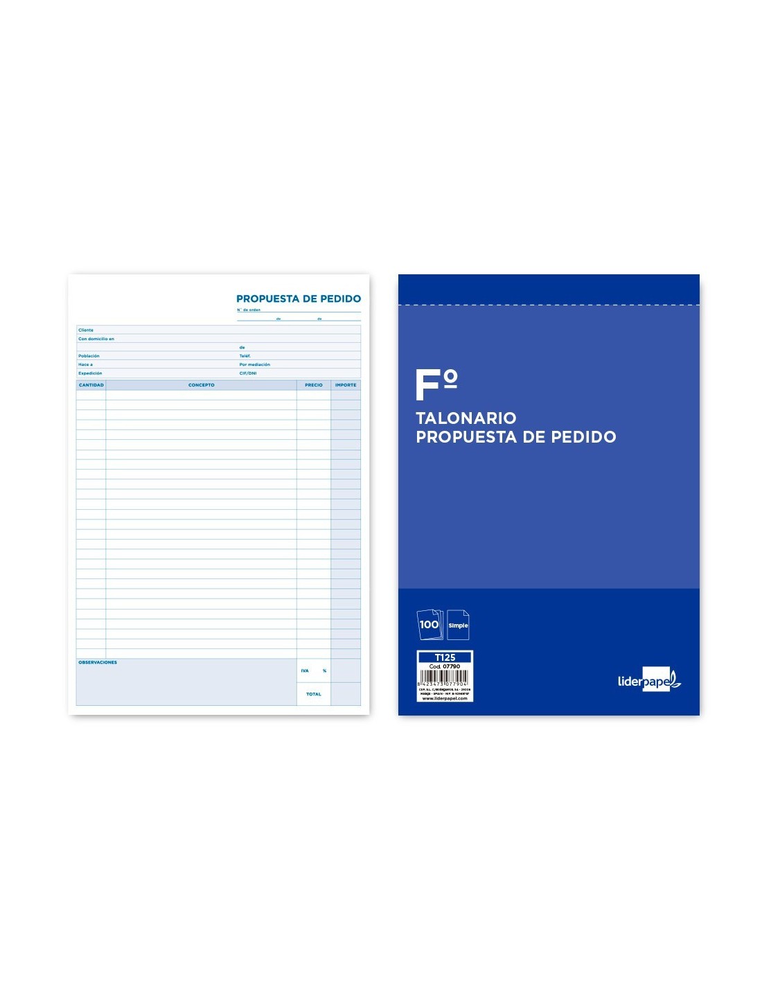 TALONARIO LIDERPAPEL PEDIDOS FOLIO 125
