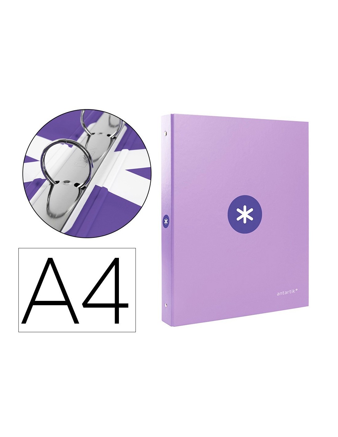 CARPETA LIDERPAPEL ANTARTIK A4 FORRADA 4 ANILLAS 25 MM REDONDAS COLOR LAVANDA