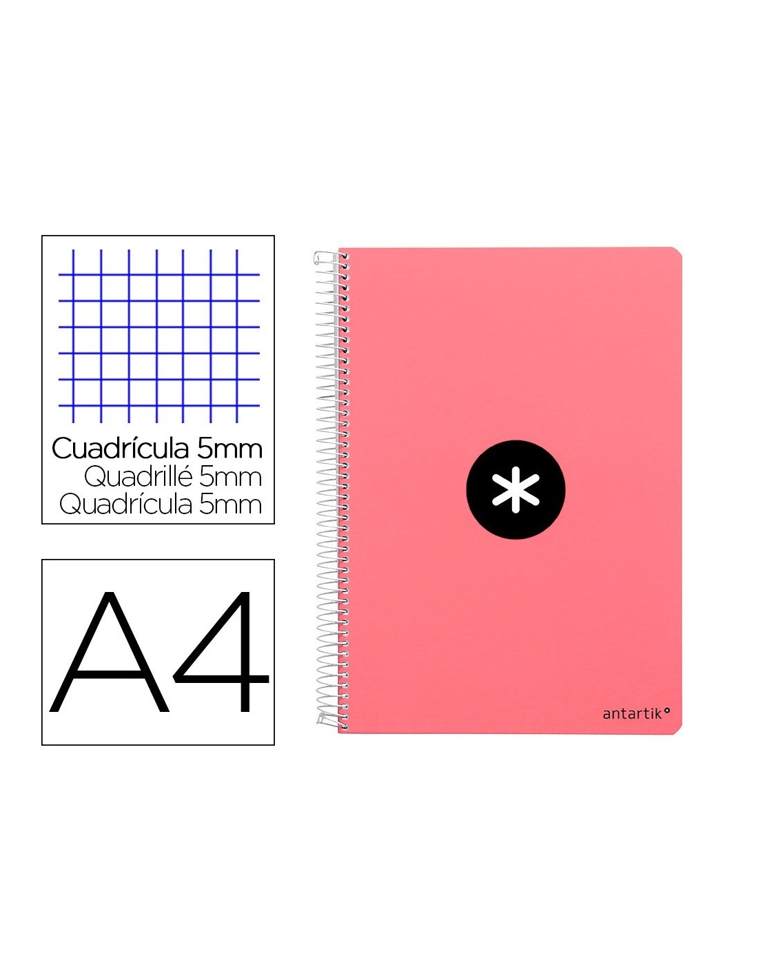 CUADERNO ESPIRAL LIDERPAPEL A4 MICRO ANTARTIK TAPA DURA 80 H 100 GR CUADRO 5MM SIN BANDAS 4 TALADROS COLOR CORAL