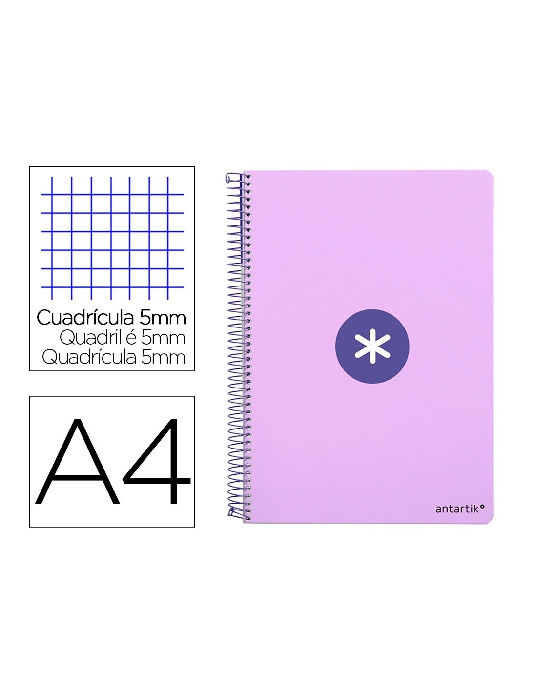 CUADERNO ESPIRAL LIDERPAPEL A4 MICRO ANTARTIK TAPA DURA 80H 100 GR CUADRO 5 MM SIN BANDAS 4 TALADROS COLOR LAVANDA