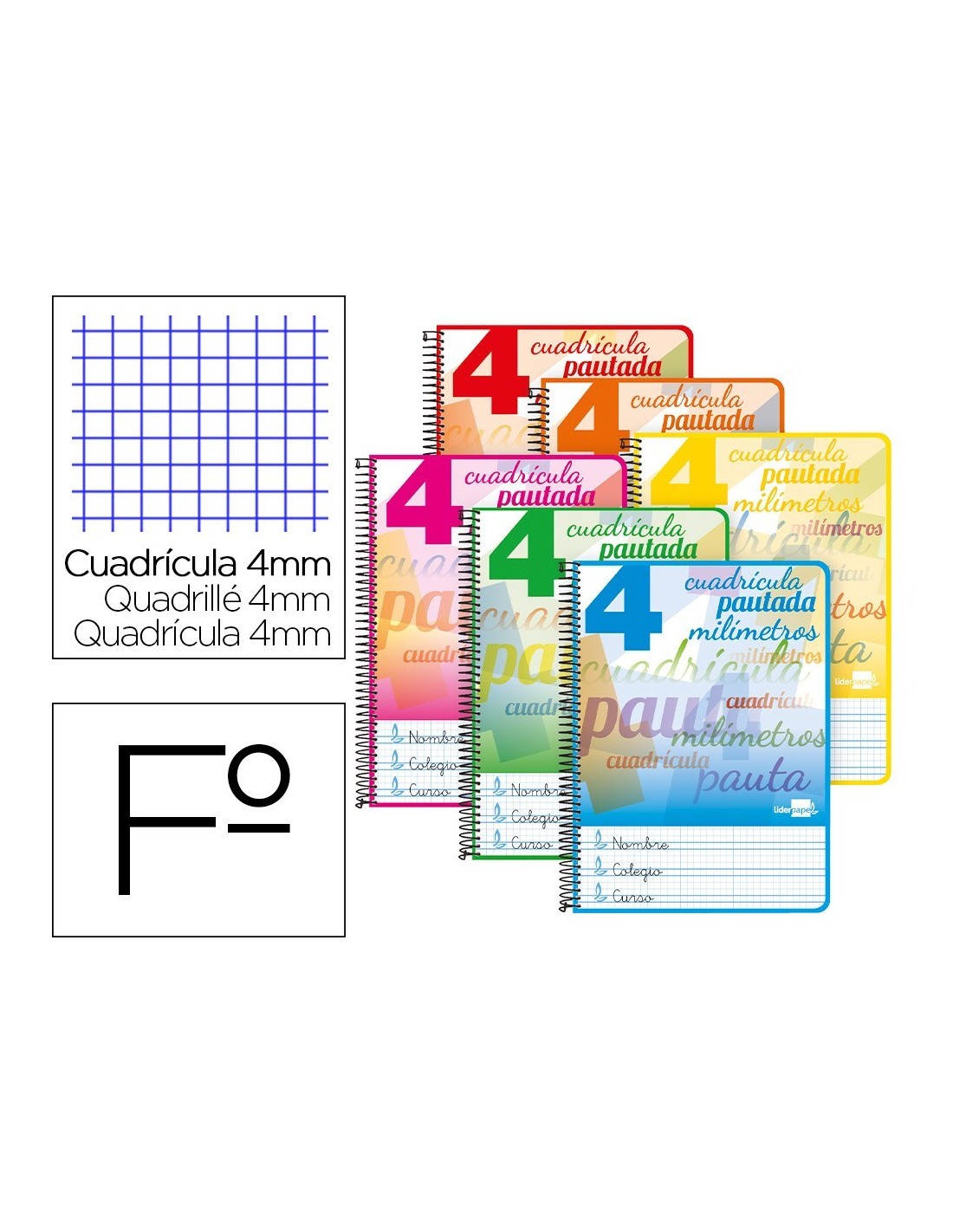 CUADERNO ESPIRAL LIDERPAPEL FOLIO PAUTAGUIA TAPA DURA 80H 75 GR CUADRO PAUTADO 4MMCON MARGEN COLORES SURTIDOS