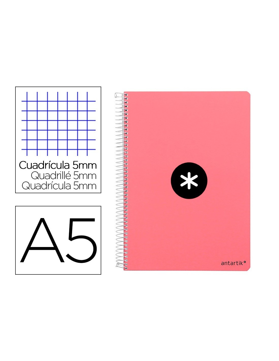CUADERNO ESPIRAL LIDERPAPEL A5 ANTARTIK TAPA DURA 80H 100 GR CUADRO 5MM COLOR CORAL