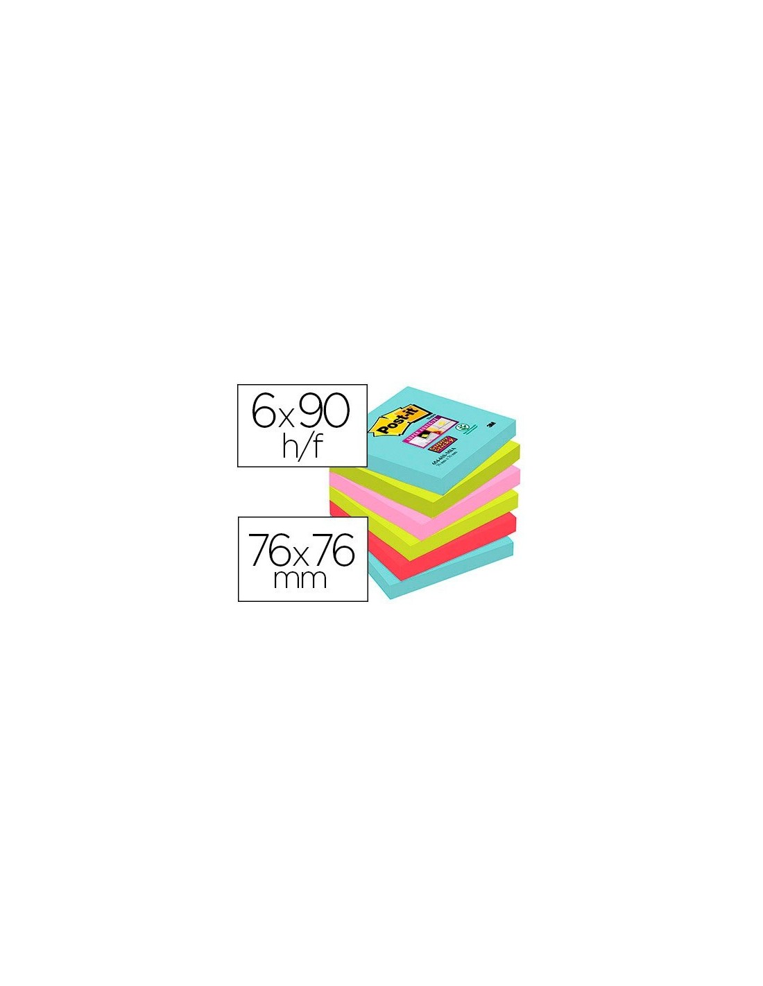 BLOC DE NOTAS ADHESIVAS QUITA Y PON POST-IT SUPER STICKY 76X76 MM CON 90 HOJAS PACK DE 6 UNIDADES COLORES MIAMI