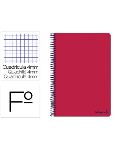 CUADERNO ESPIRAL LIDERPAPEL FOLIO SMART TAPA BLANDA 80H 60GR CUADRO 4MM CON MARGEN COLOR ROJO