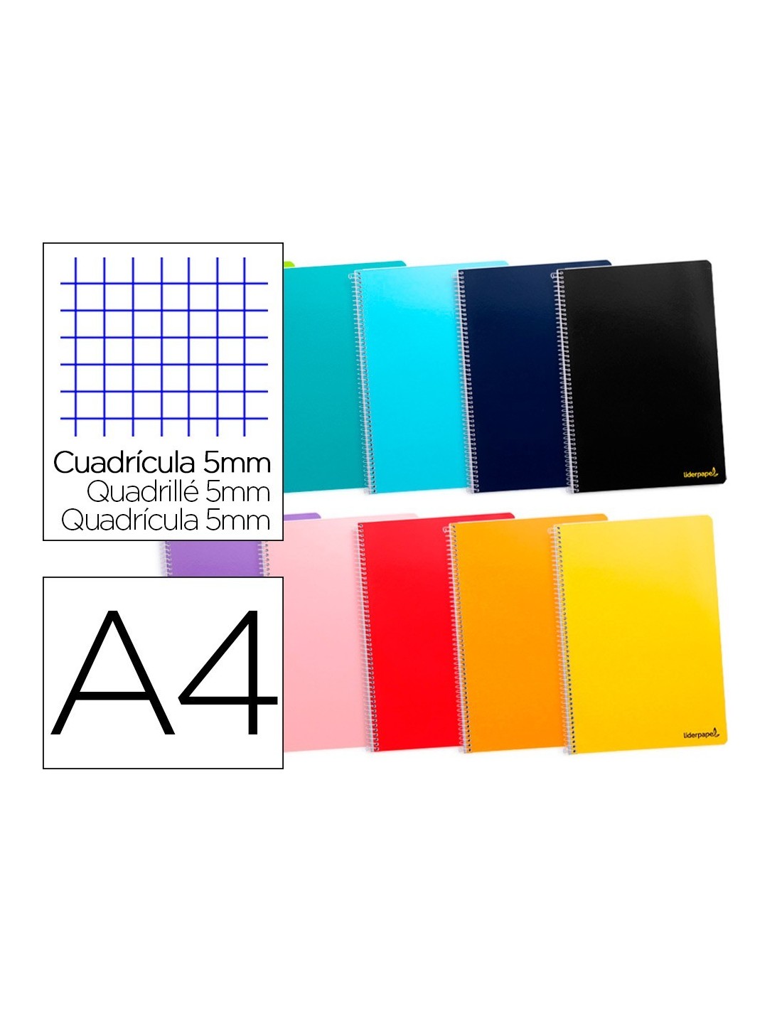 CUADERNO ESPIRAL LIDERPAPEL A4 MICRO SMART TAPA BLANDA 80H60GR CUADRO 5MM DOBLE MARGEN 4 TALADROS COLORES SURTIDOS