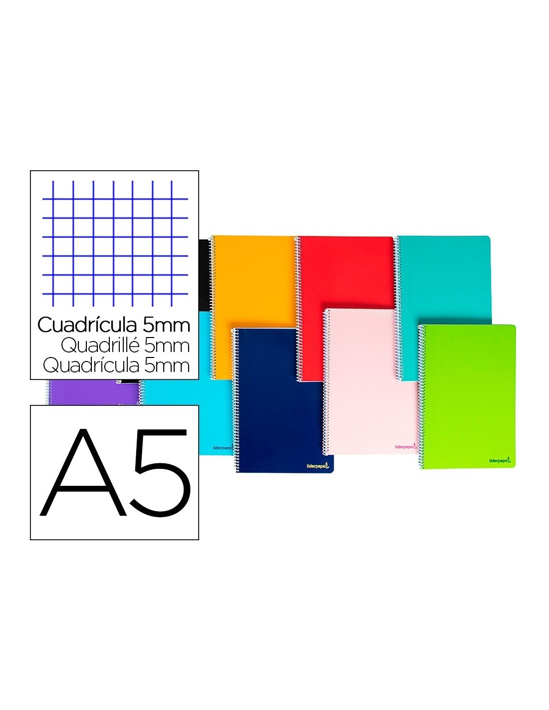 CUADERNO ESPIRAL LIDERPAPEL A5 MICRO SMART TAPA BLANDA 80H60GR CUADRO 5MM 6 TALADROS COLORES SURTIDOS
