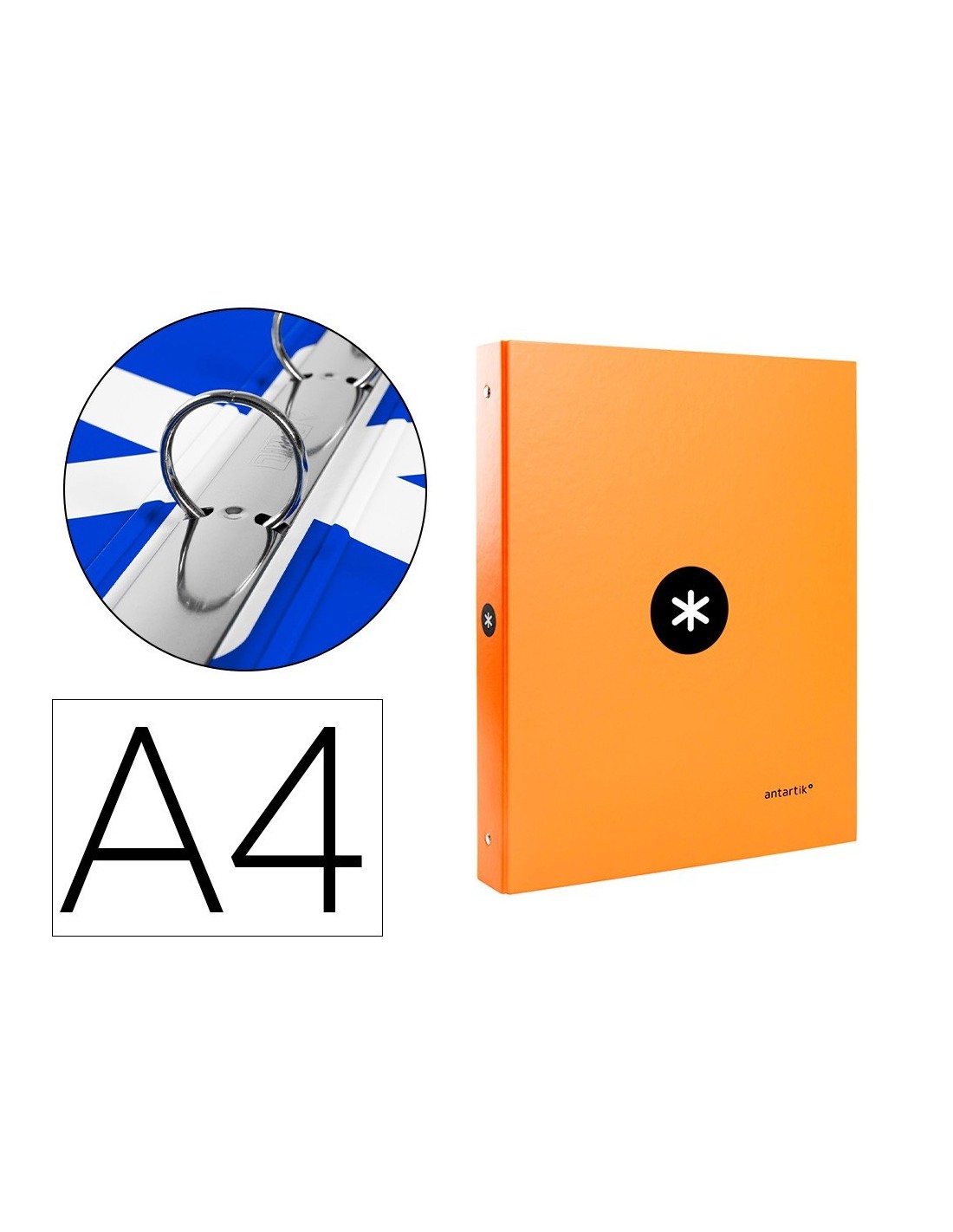 CARPETA LIDERPAPEL ANTARTIK A4 FORRADA 4 ANILLAS 25 MM REDONDAS COLOR NARANJA