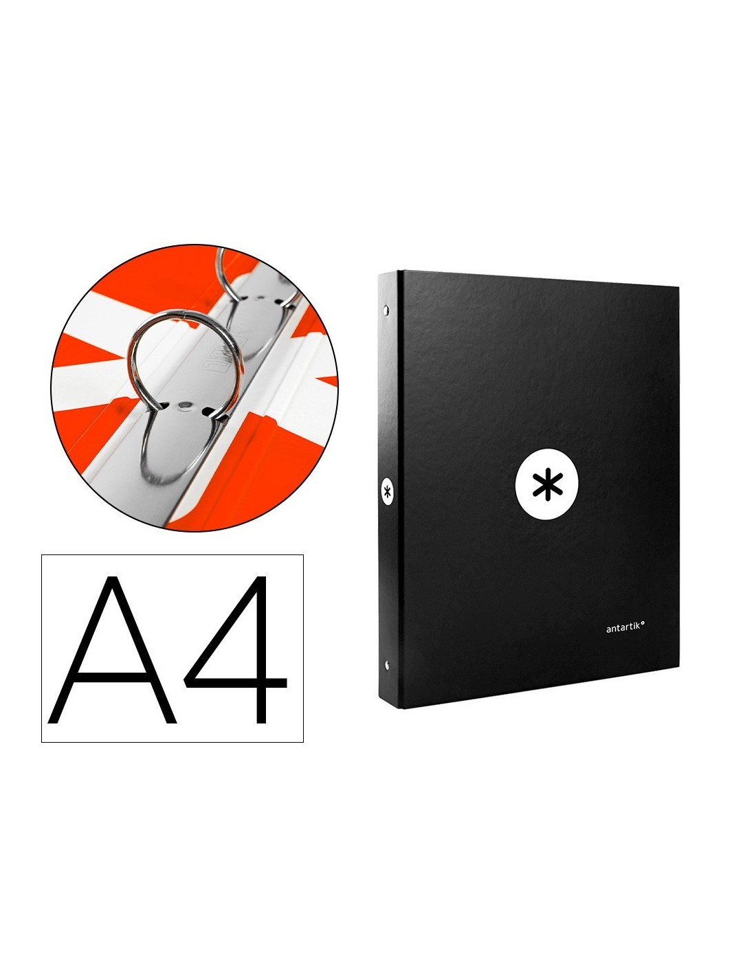 CARPETA LIDERPAPEL ANTARTIK A4 FORRADA 4 ANILLAS 25 MM REDONDAS COLOR NEGRO