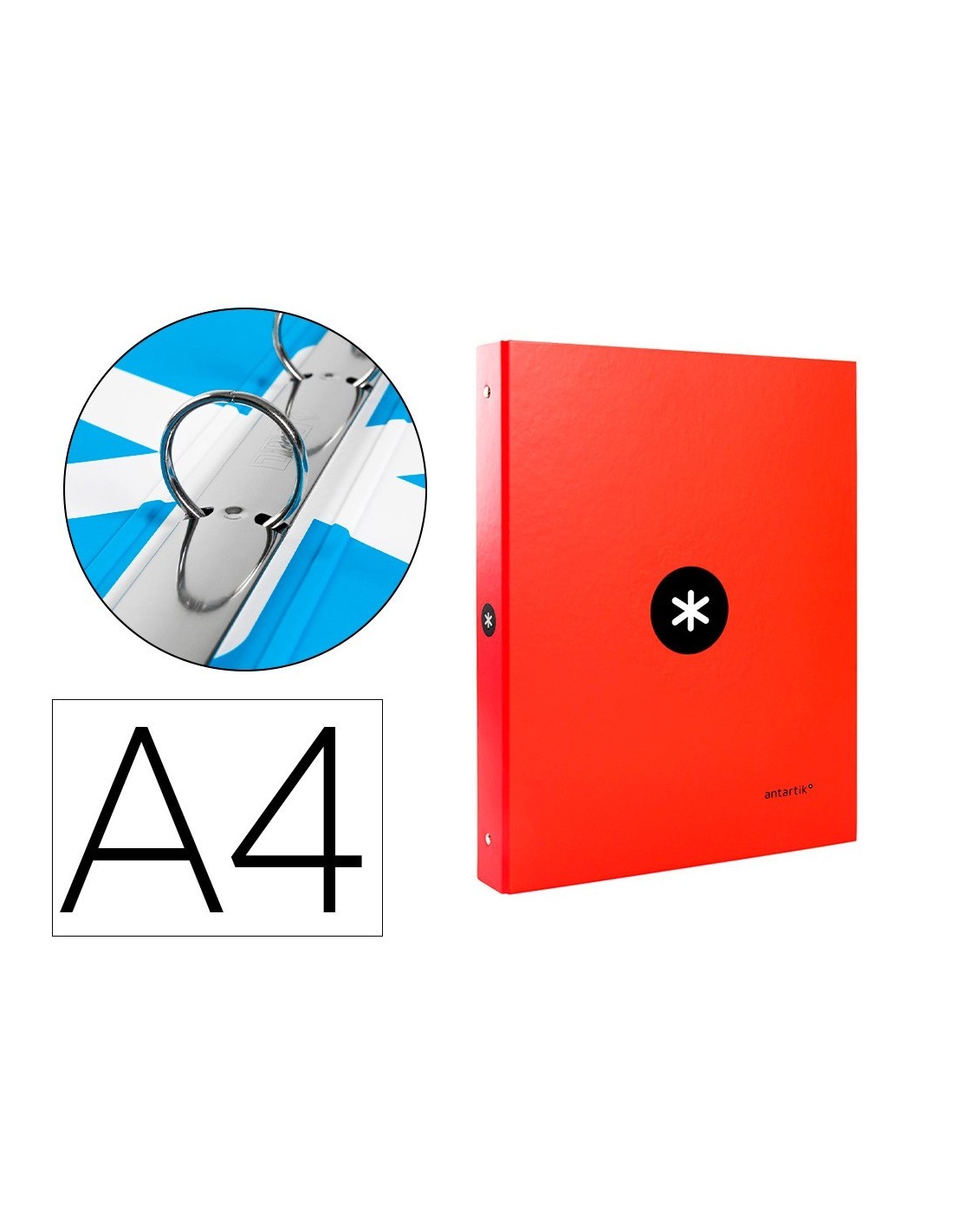 CARPETA LIDERPAPEL ANTARTIK A4 FORRADA 4 ANILLAS 25 MM REDONDAS COLOR ROJO