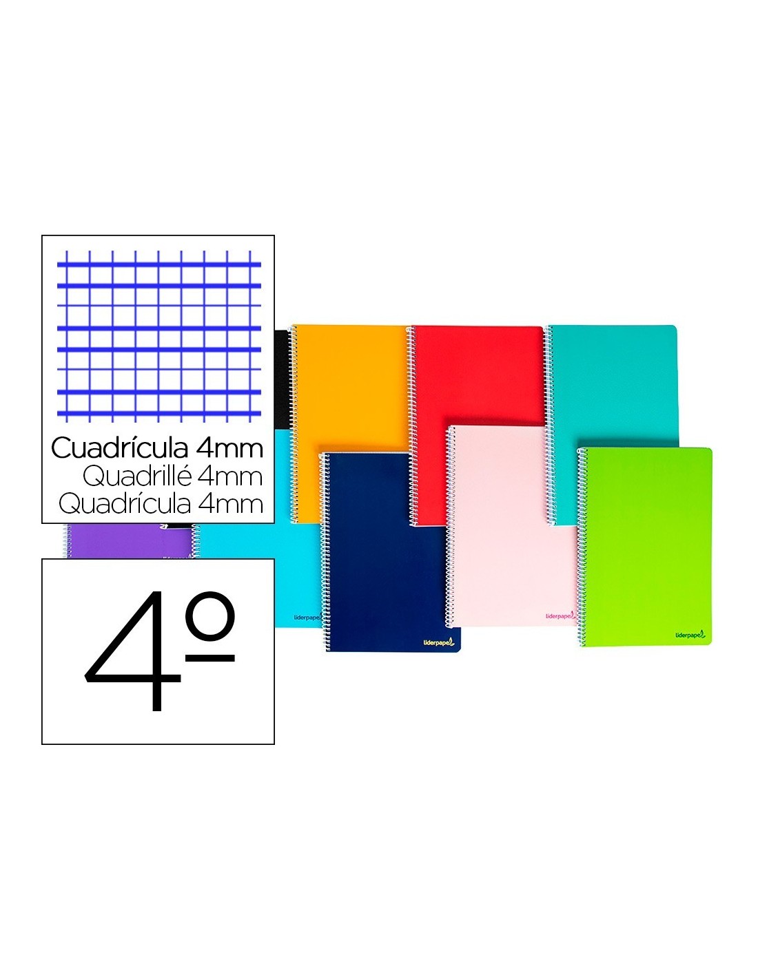CUADERNO ESPIRAL LIDERPAPEL CUARTO SMART TAPA BLANDA 80H 60GR CUADRO 4MM CON MARGEN COLORES SURTIDOS