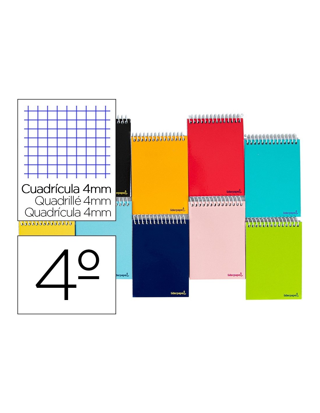 CUADERNO ESPIRAL LIDERPAPEL CUARTO APAISADO SMART TAPA BLANDA 80H 60GR CUADRO 4MM CONMARGEN COLORES SURTIDOS