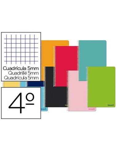 CUADERNO ESPIRAL LIDERPAPEL CUARTO SMART TAPA BLANDA 80H 60GR CUADRO 5MM CON MARGEN COLORES SURTIDOS