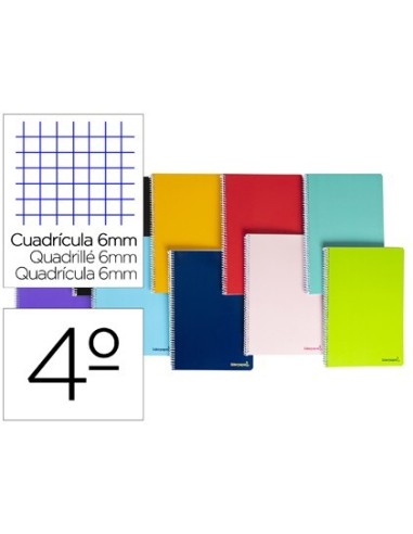CUADERNO ESPIRAL LIDERPAPEL CUARTO SMART TAPA BLANDA 80H 60GR CUADRO 6MM CON MARGEN COLORES SURTIDOS