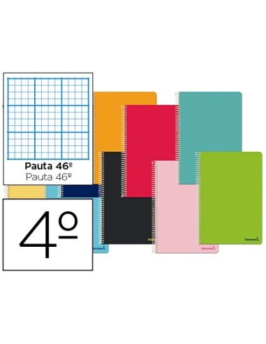 CUADERNO ESPIRAL LIDERPAPEL CUARTO SMART TAPA BLANDA 80H 60GR RAYADO N.46 COLORES SURTIDOS