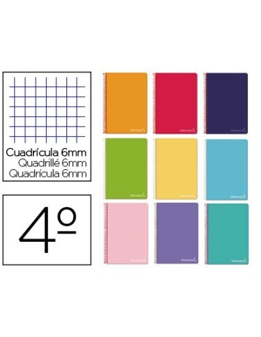 CUADERNO ESPIRAL LIDERPAPEL CUARTO WITTY TAPA DURA 80H 75GR CUADRO 6MM CON MARGEN COLORES SURTIDOS