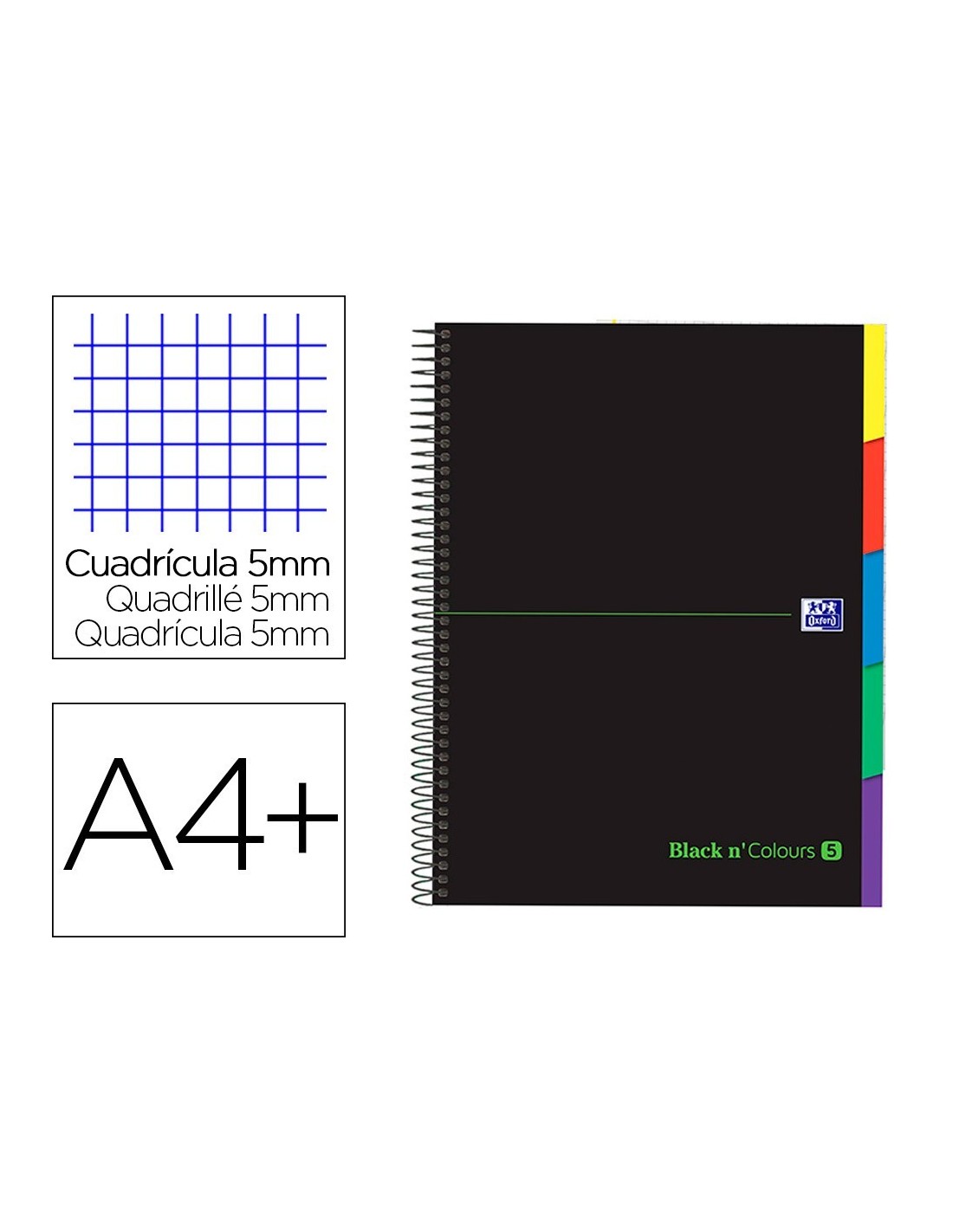 CUADERNO ESPIRAL OXFORD EBOOK 5 TAPA EXTRADURA DIN A4+ 100 H CON SEPARADORES CUADRICULA 5 MM BLACK'N COLORS VERDE